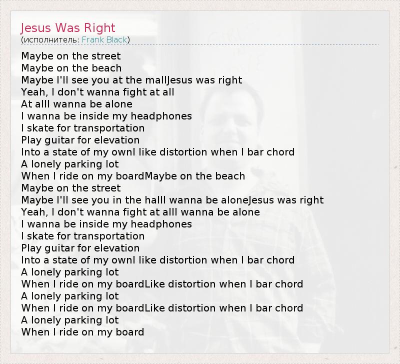 А как ты думаешь, о чем песня "Jesus Was Right" ?