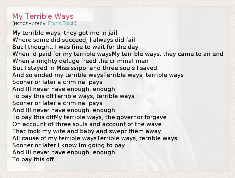 А как ты думаешь, о чем песня "My Terrible Ways" ?
