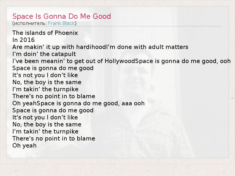 ГлавнаяИсполнителиFrank BlackSpace Is Gonna Do Me Good