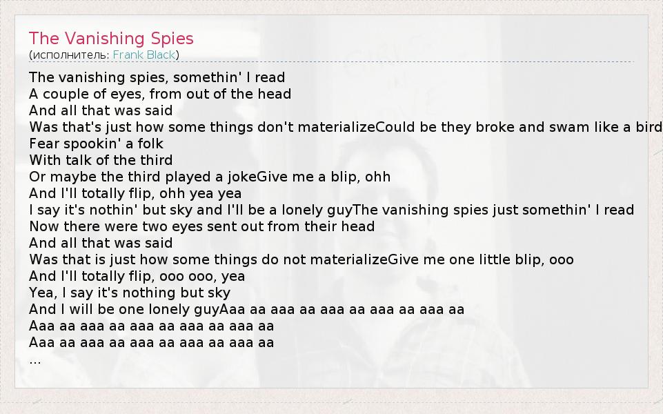 А как ты думаешь, о чем песня "The Vanishing Spies" ?