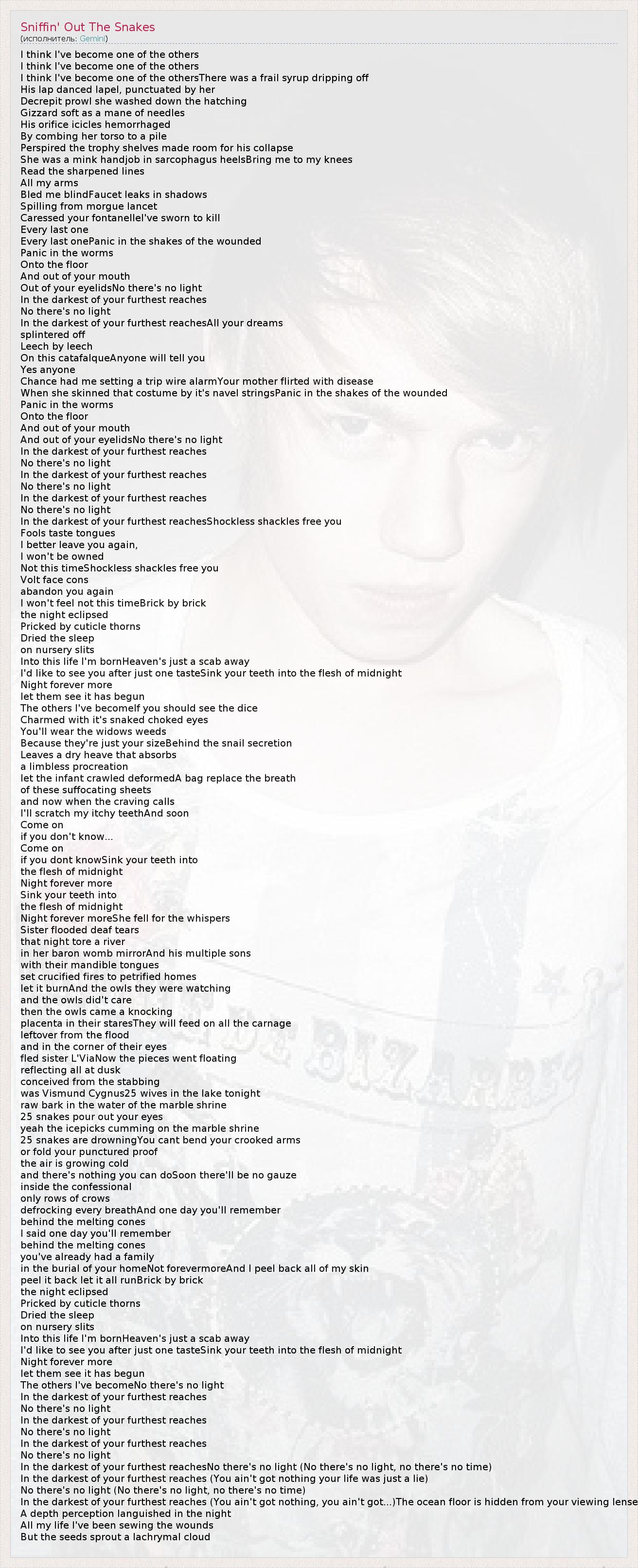 А как ты думаешь, о чем песня "Sniffin' Out The Snakes" ?