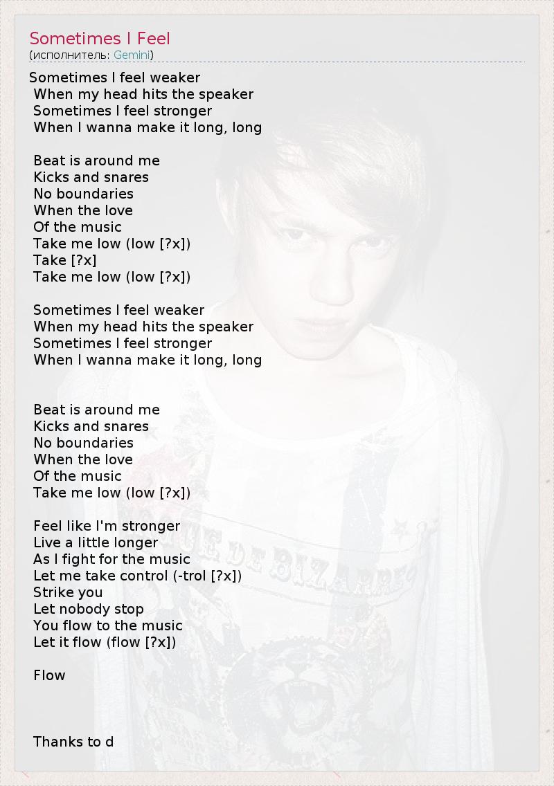 А как ты думаешь, о чем песня "Sometimes I Feel" ?