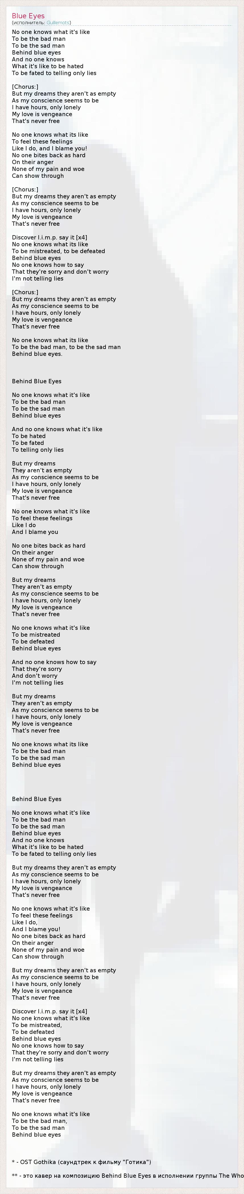 ** - это кавер на композицию Behind Blue Eyes в исполнении группы The Who