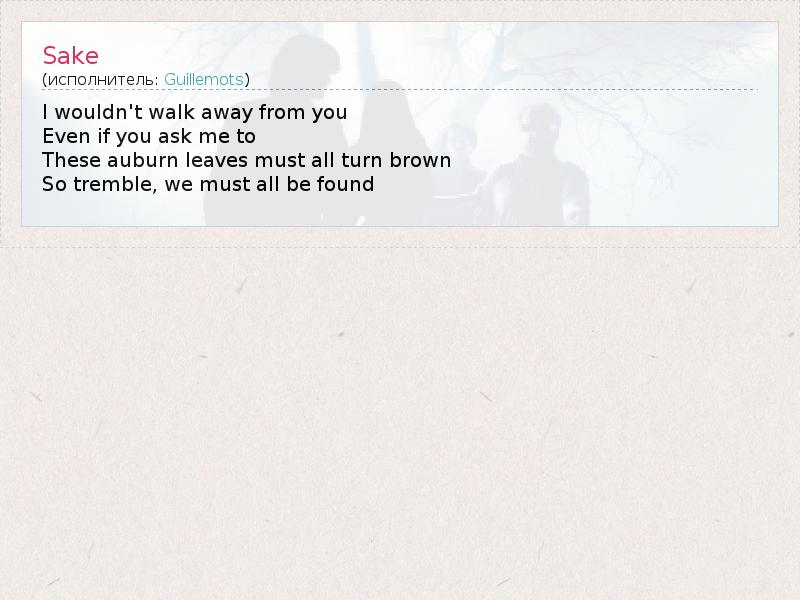 А как ты думаешь, о чем песня "Sake" ?