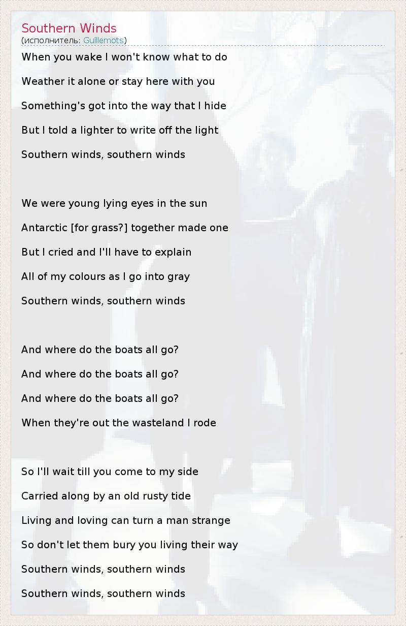 А как ты думаешь, о чем песня "Southern Winds" ?