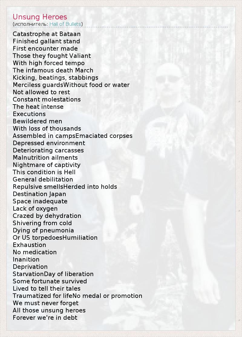 А как ты думаешь, о чем песня "Unsung Heroes" ?