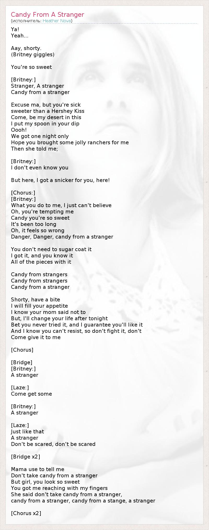 А как ты думаешь, о чем песня "Candy From A Stranger" ?