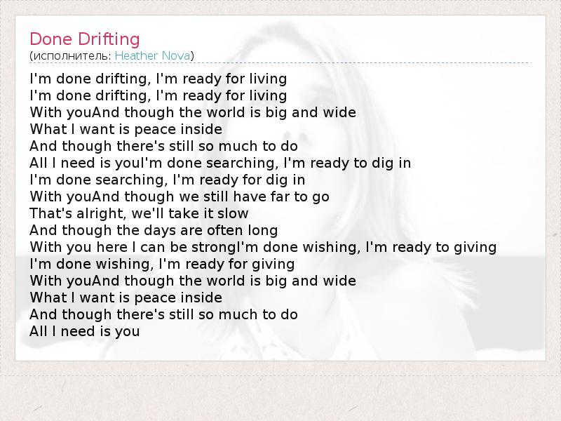 А как ты думаешь, о чем песня "Done Drifting" ?