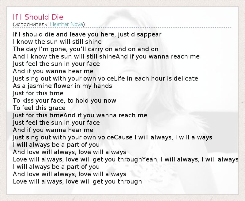 If I should die and leave you here, just disappear