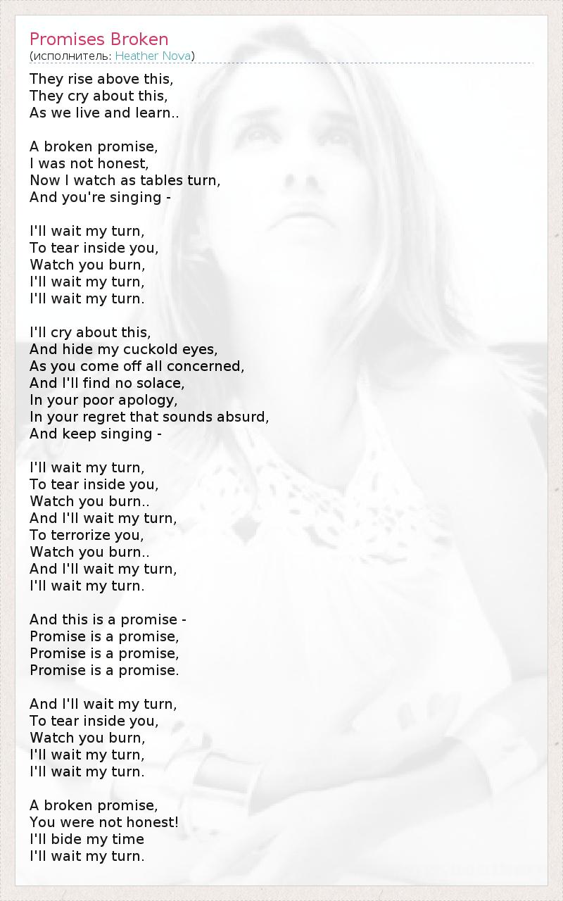 А как ты думаешь, о чем песня "Promises Broken" ?