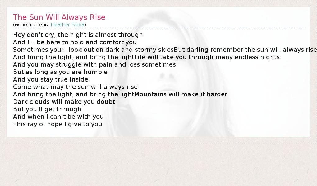 А как ты думаешь, о чем песня "The Sun Will Always Rise" ?