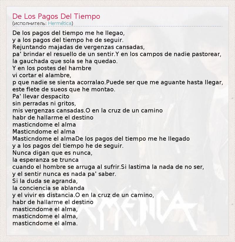 ГлавнаяИсполнителиHerméticaDe Los Pagos Del Tiempo