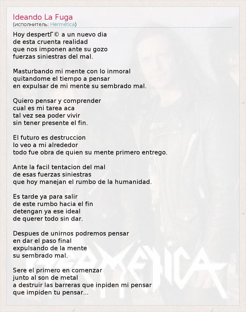 А как ты думаешь, о чем песня "Ideando La Fuga" ?