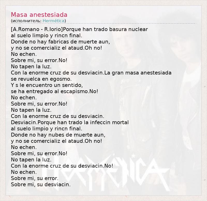 А как ты думаешь, о чем песня "Masa anestesiada" ?