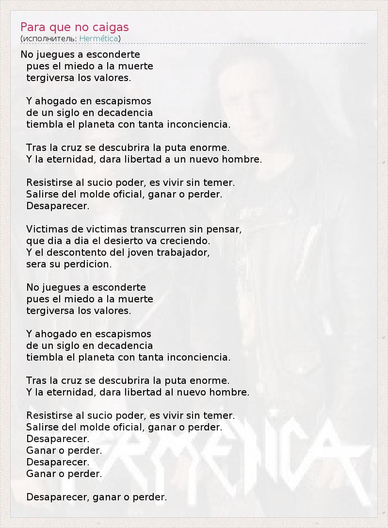 А как ты думаешь, о чем песня "Para que no caigas" ?