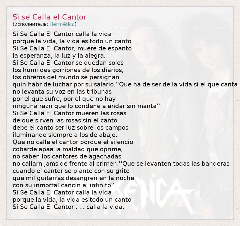 А как ты думаешь, о чем песня "Si se Calla el Cantor" ?