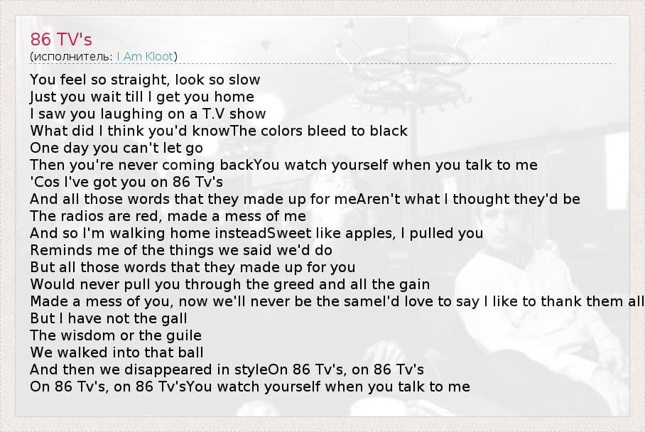 On 86 Tv's, on 86 Tv'sYou watch yourself when you talk to me