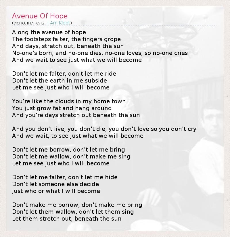 А как ты думаешь, о чем песня "Avenue Of Hope" ?