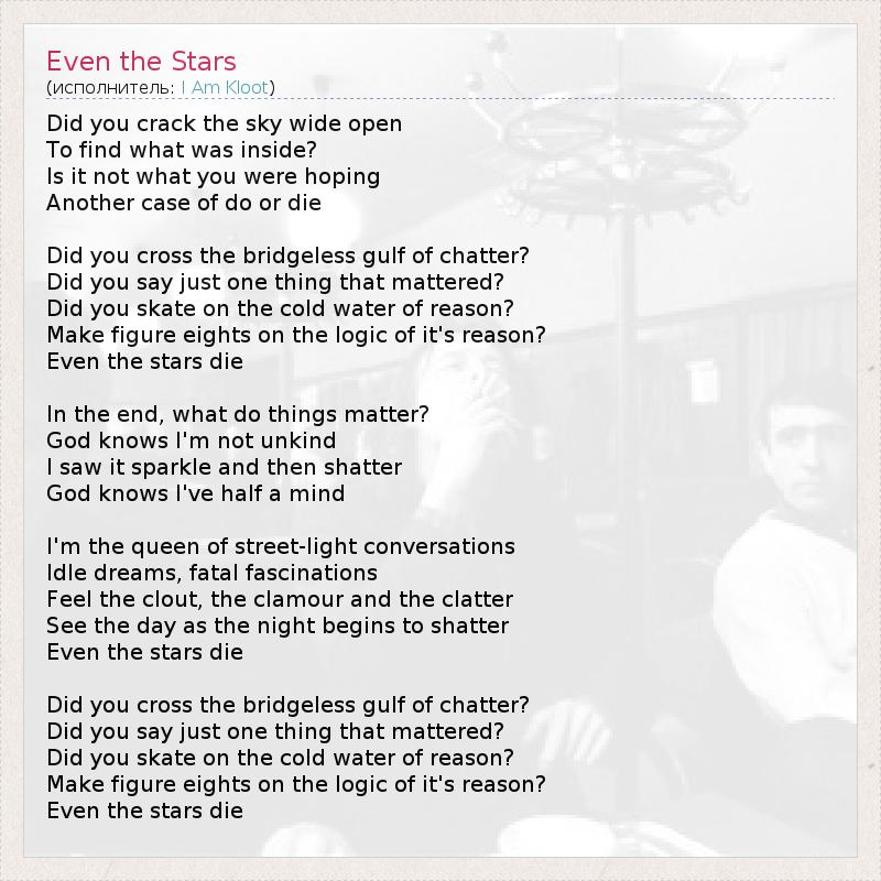 А как ты думаешь, о чем песня "Even the Stars" ?