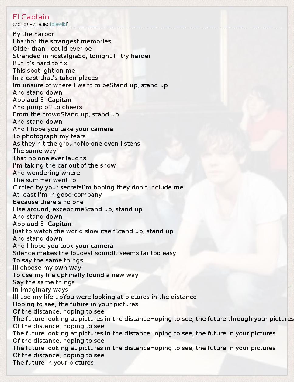 Это интересно:Группа Idlewild сформировалась в 1995 году, в Эдинбурге, Шотландия. Родди Вумбл – девятнадцатилетний студент, учившийся на фотографа, только что переехавший в Эдинбург из севера Шотландии, встречает Колина Ньютона, вовремя одной из студенческих вечеринок в Толл Кросс. Род Джонс который тоже был на этой вечеринке не познакомился с ними в тот вечер. Колин, как и Родди тоже перебрался в Эдинбург... продолжение