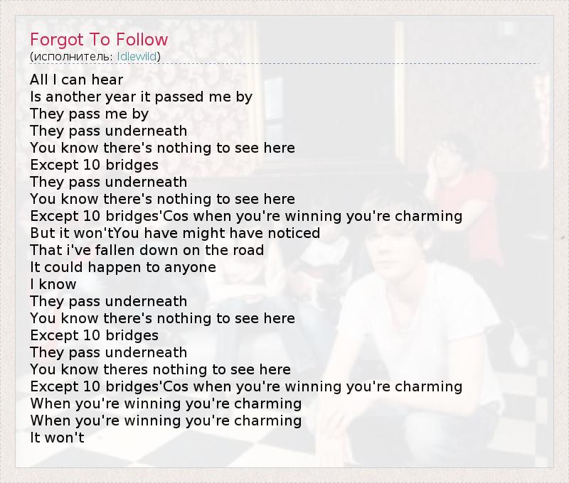 А как ты думаешь, о чем песня "Forgot To Follow" ?