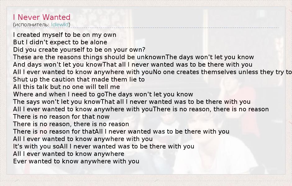 А как ты думаешь, о чем песня "I Never Wanted" ?