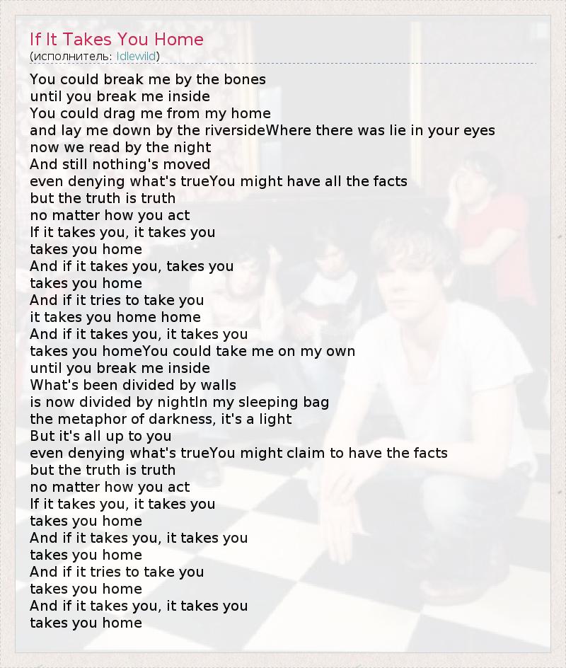 А как ты думаешь, о чем песня "If It Takes You Home" ?