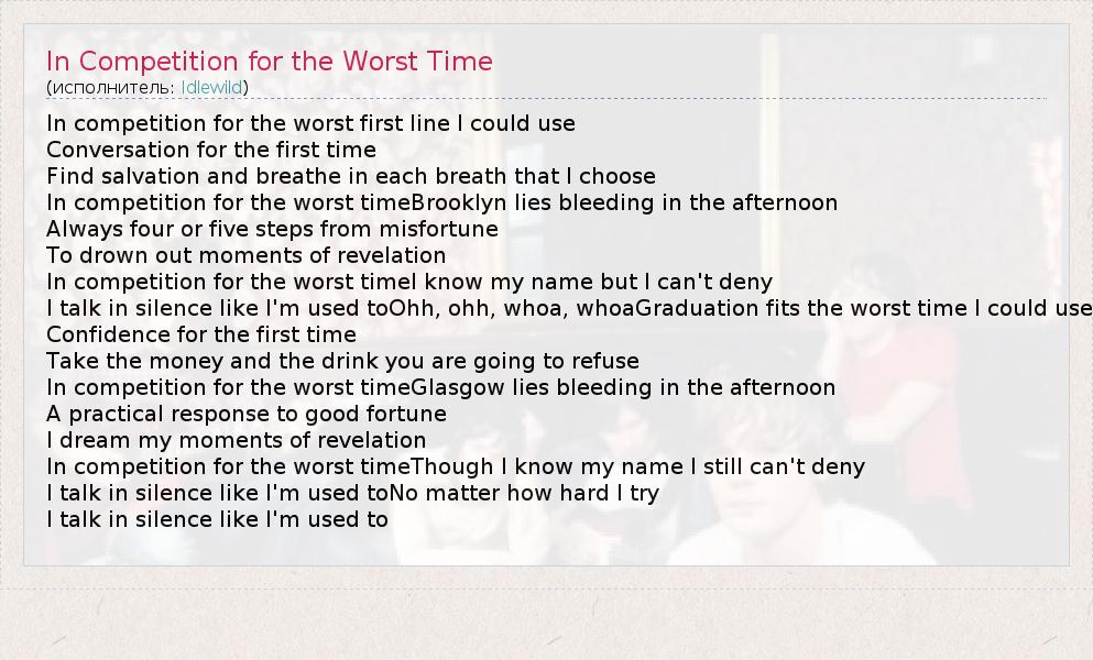 А как ты думаешь, о чем песня "In Competition for the Worst Time" ?