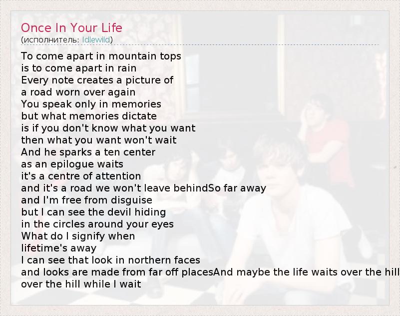 А как ты думаешь, о чем песня "Once In Your Life" ?