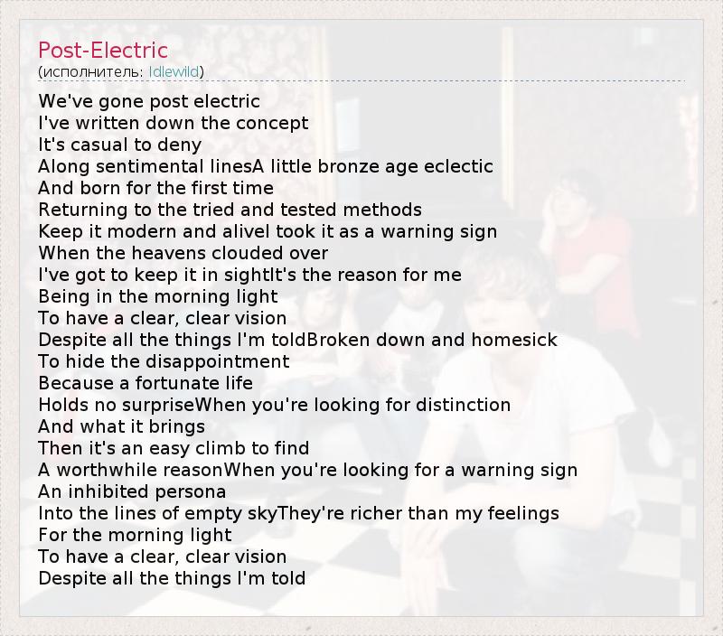 А как ты думаешь, о чем песня "Post-Electric" ?