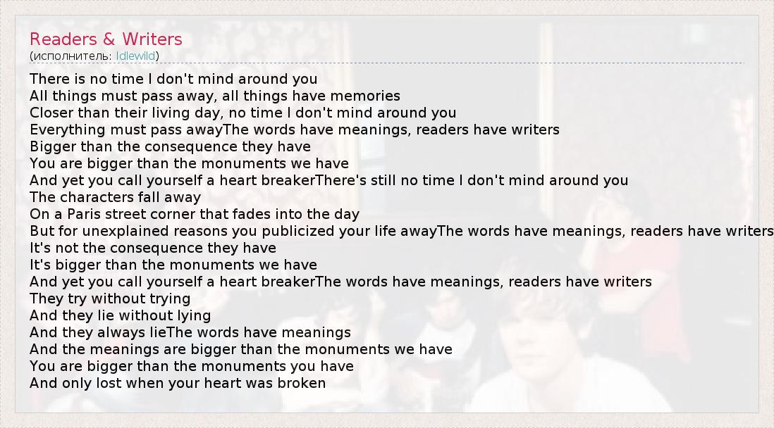 А как ты думаешь, о чем песня "Readers & Writers" ?