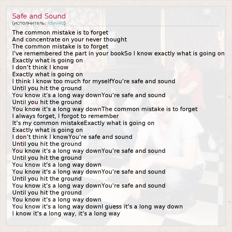 А как ты думаешь, о чем песня "Safe and Sound" ?