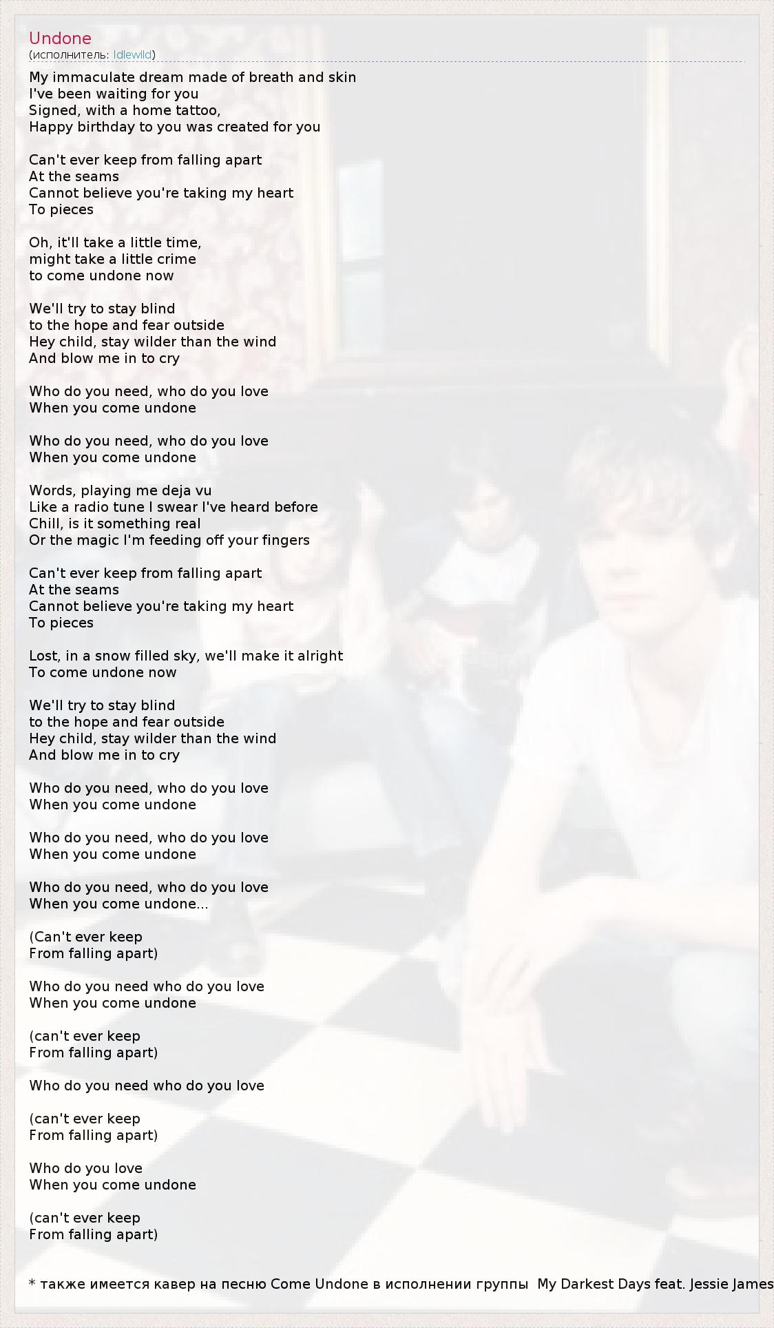 * также имеется кавер на песню Come Undone в исполнении группы  My Darkest Days feat. Jessie James