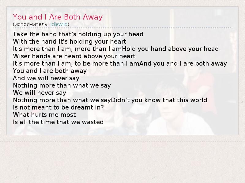 А как ты думаешь, о чем песня "You and I Are Both Away" ?