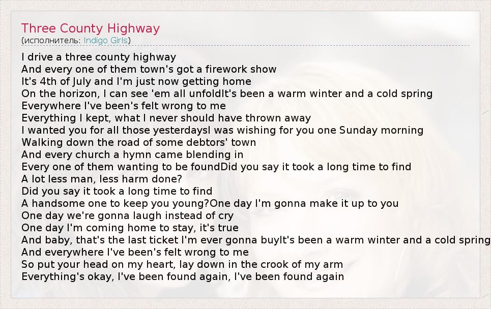 А как ты думаешь, о чем песня "Three County Highway" ?