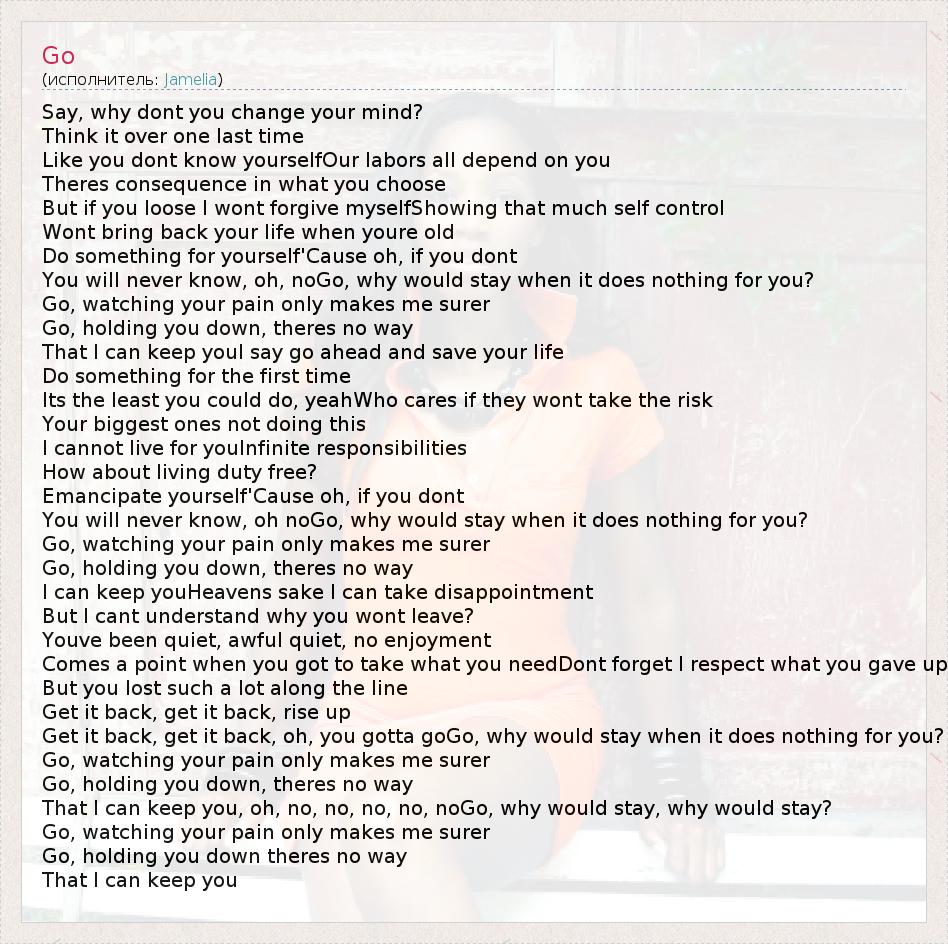 You will never know, oh noGo, why would stay when it does nothing for you?