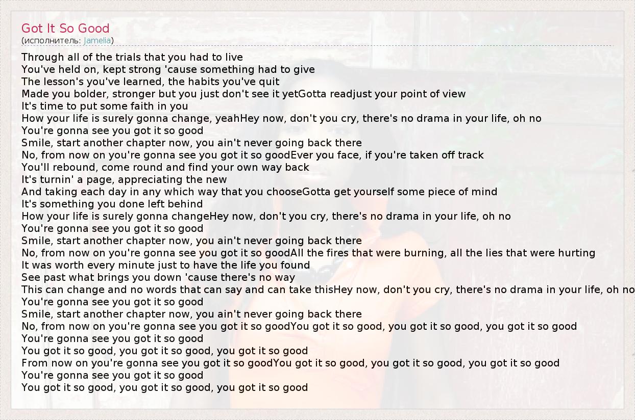 А как ты думаешь, о чем песня "Got It So Good" ?