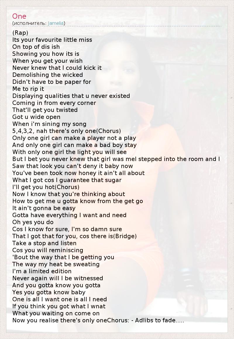 One is all I want one is all I need