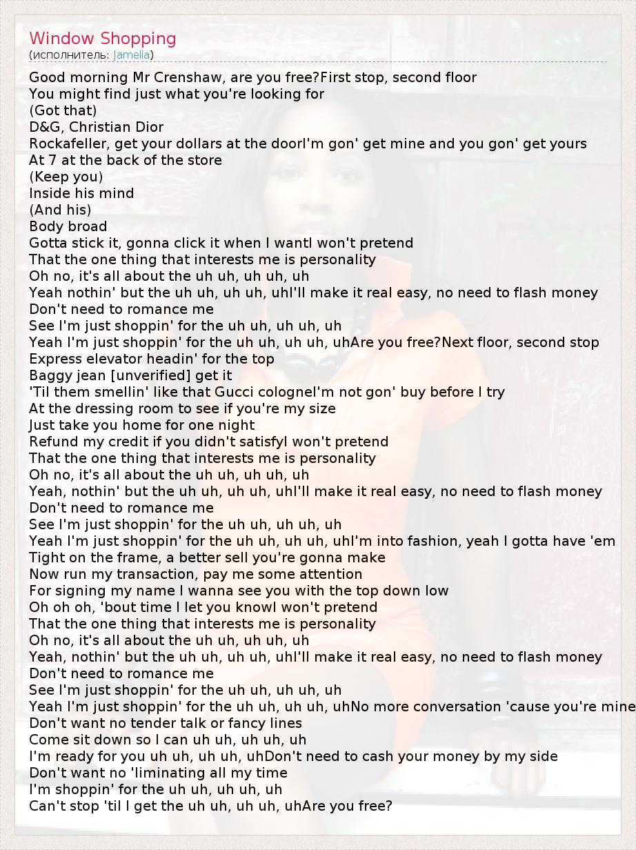 А как ты думаешь, о чем песня "Window Shopping" ?