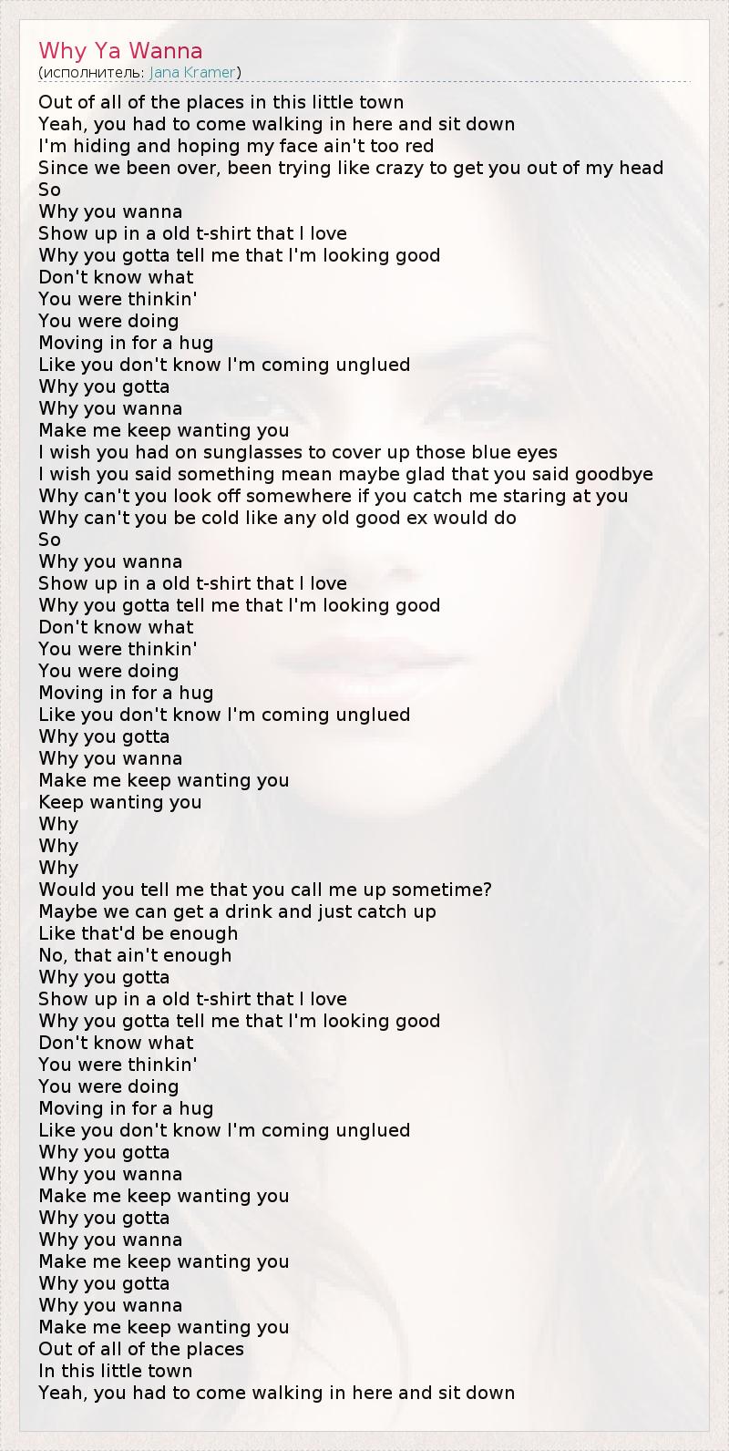 А как ты думаешь, о чем песня "Why Ya Wanna" ?