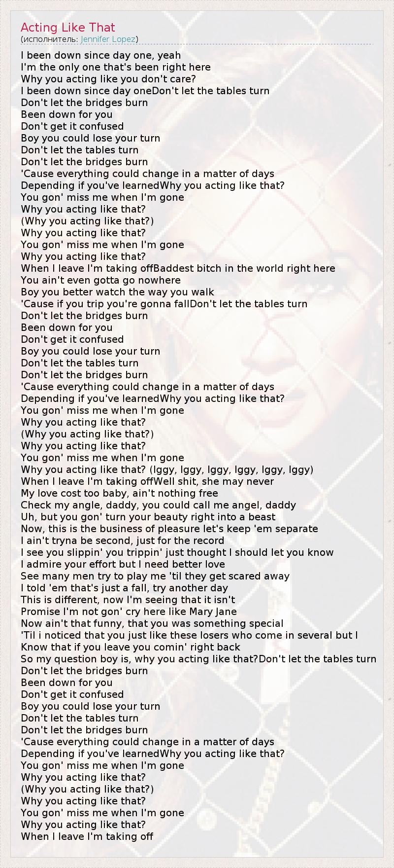 А как ты думаешь, о чем песня "Acting Like That" ?