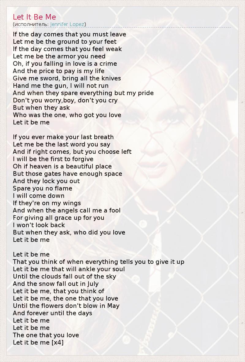 А как ты думаешь, о чем песня "Let It Be Me" ?