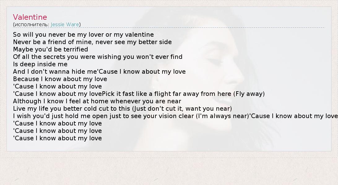 I wish you'd just hold me open just to see your vision clear (I'm always near)'Cause I know about my love