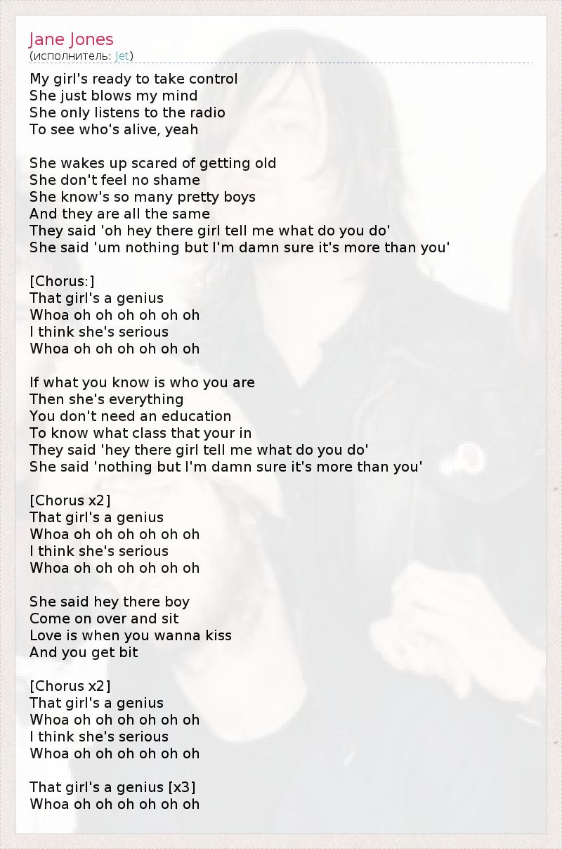 А как ты думаешь, о чем песня "Jane Jones" ?