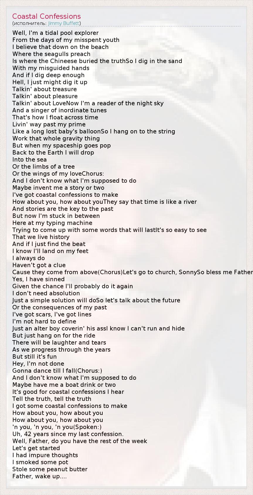 А как ты думаешь, о чем песня "Coastal Confessions" ?
