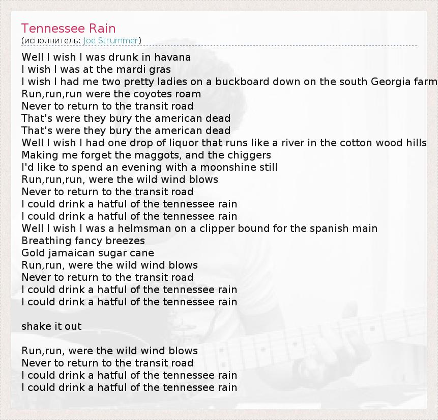 А как ты думаешь, о чем песня "Tennessee Rain" ?
