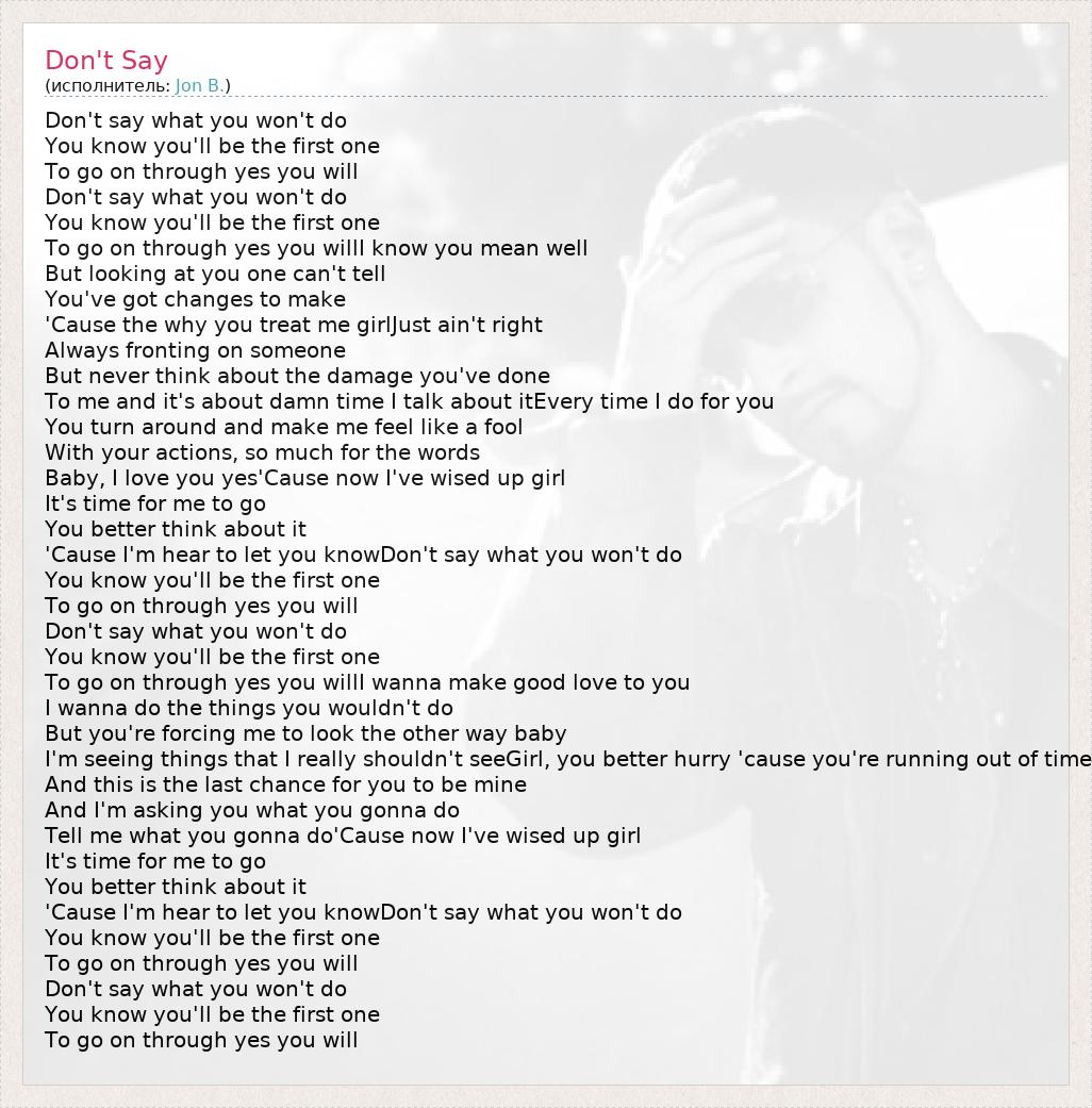 Это интересно:Jon B. (born Jonathan David Buck November 11, 1974 in Providence, Rhode Island, USA) is a Grammy nominated American R&B singer and songwriter.Early lifeBorn in Rhode Island and raised in Pasadena, California, Buck comes from a musical family; with his father David, a professor of music, his mother Linda, a concert pianist and his siblings Deborah, a violinist and his brother Kevin, a cellist. He first started singing at the age of four, and learned piano and keyboard by nine. By 16, he played bass and drums as well. Because his grandparents also owned a record store, Buck was raised on a varied musical diet that included influences like Marvin Gaye and Stevie Wonder.CareerIn... продолжение
