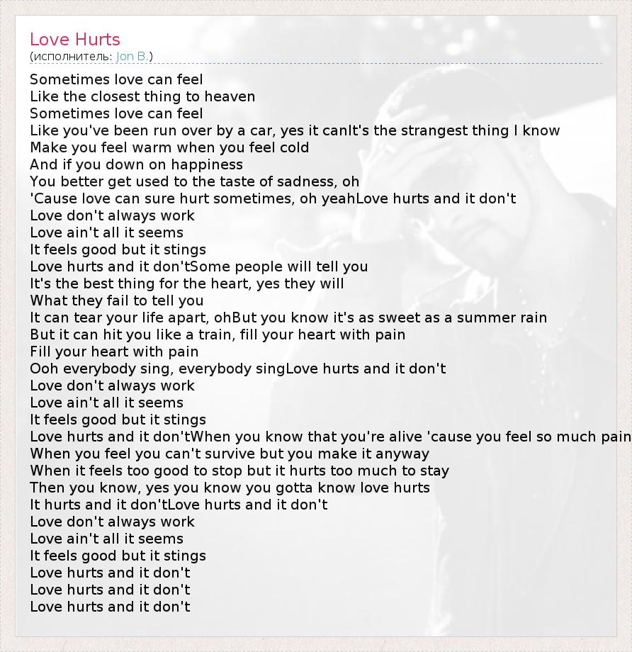 'Cause love can sure hurt sometimes, oh yeahLove hurts and it don't