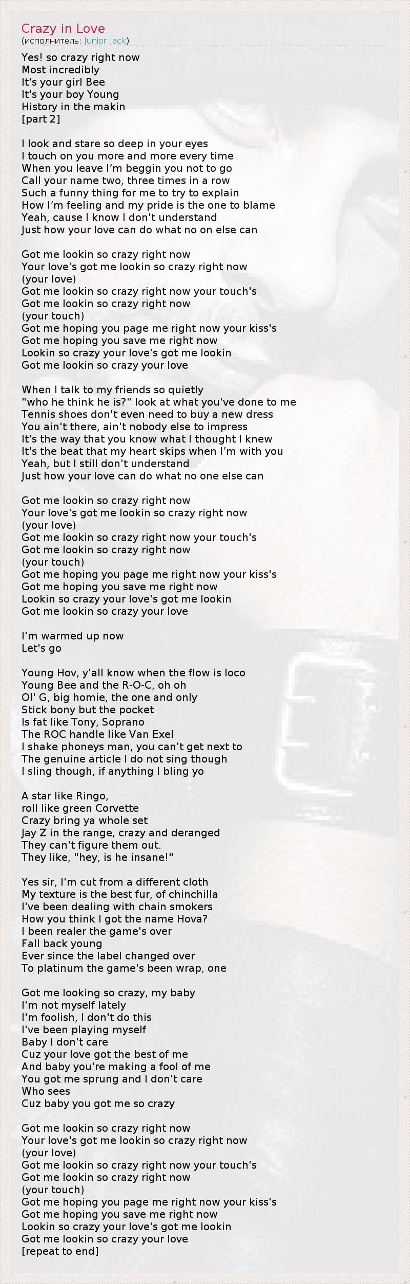 А как ты думаешь, о чем песня "Crazy in Love" ?