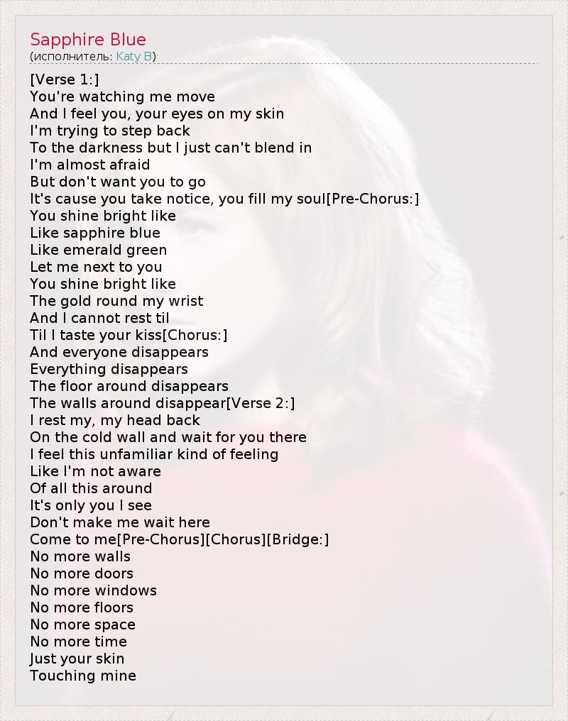 А как ты думаешь, о чем песня "Sapphire Blue" ?